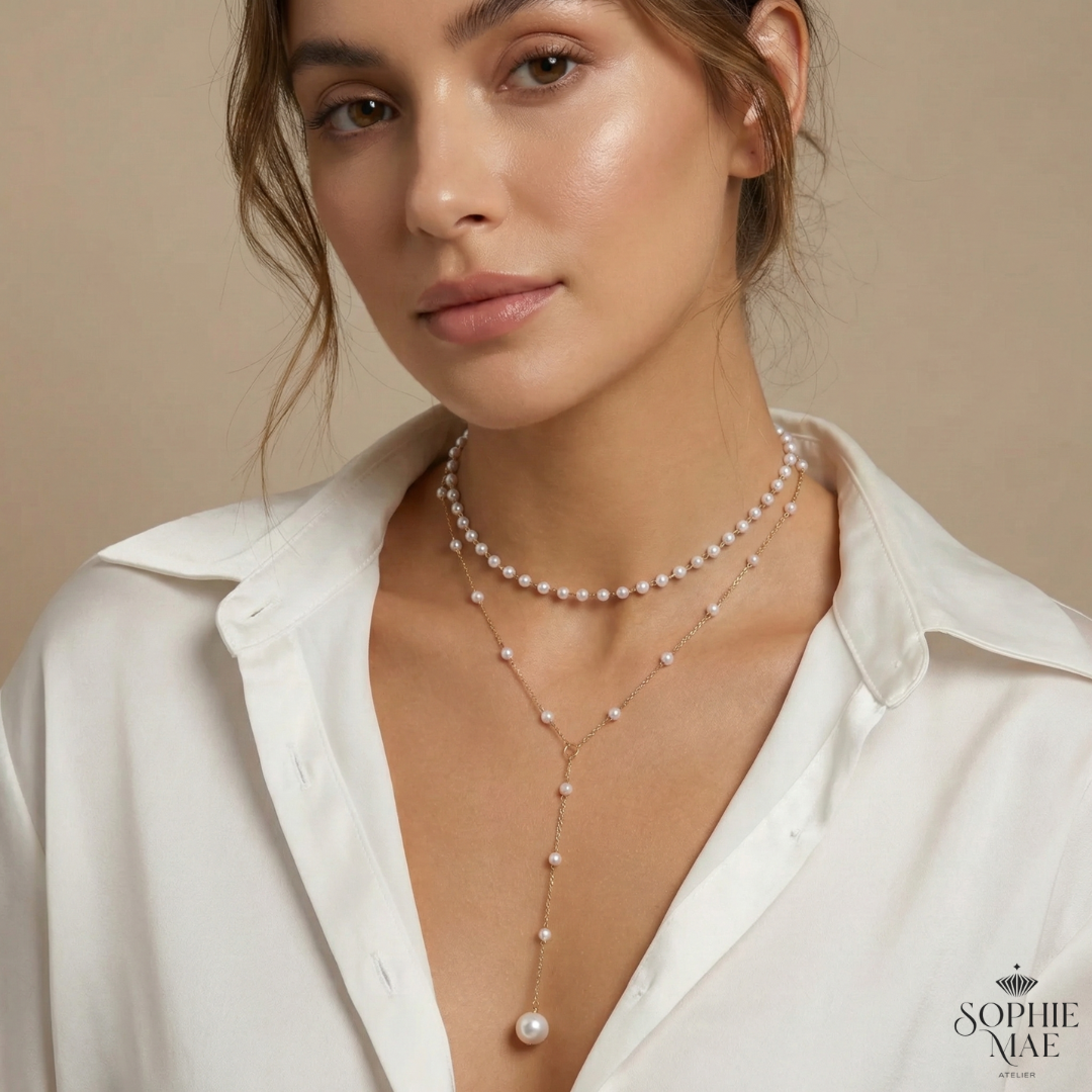 The Luna Pearl Layered Necklace is designed to elevate every look — from everyday minimal to evening chic. Featuring delicate gold chains and luminous pearl accents, this layered Y-necklace creates a flattering neckline with just the right touch of luxury.